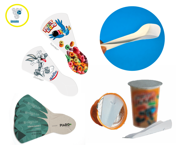 Although this folding works as a spoon for desserts and dairy products, was created for used as a marketing tool because it is easy for being printed.
